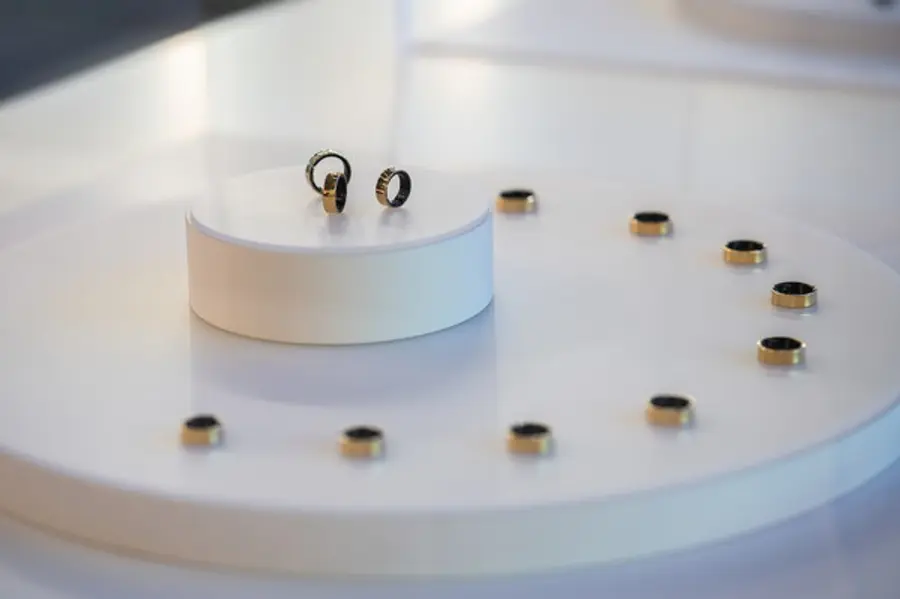 실물 공개는 MWC 2024가 최초다. 다만 공식 출시 전까지 보안 등을 위해 아크릴 박스 안에 제품을 전시했다. '갤럭시 링'은 블랙·골드·실버 3가지 색상, 총 9개의 사이즈로 전시된다.