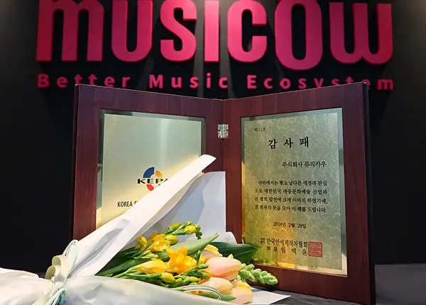 연제협 시상식 감사패 부문은 방송, 언론, 사업 분야 등에서 특별히 협회 및 산업 발전에 기여한 외부 인사에 대해 회원 추천 및 이사회 의결을 통해 수여하는 상으로, 뮤직카우가 이 부문 수상자로 선정됐다.