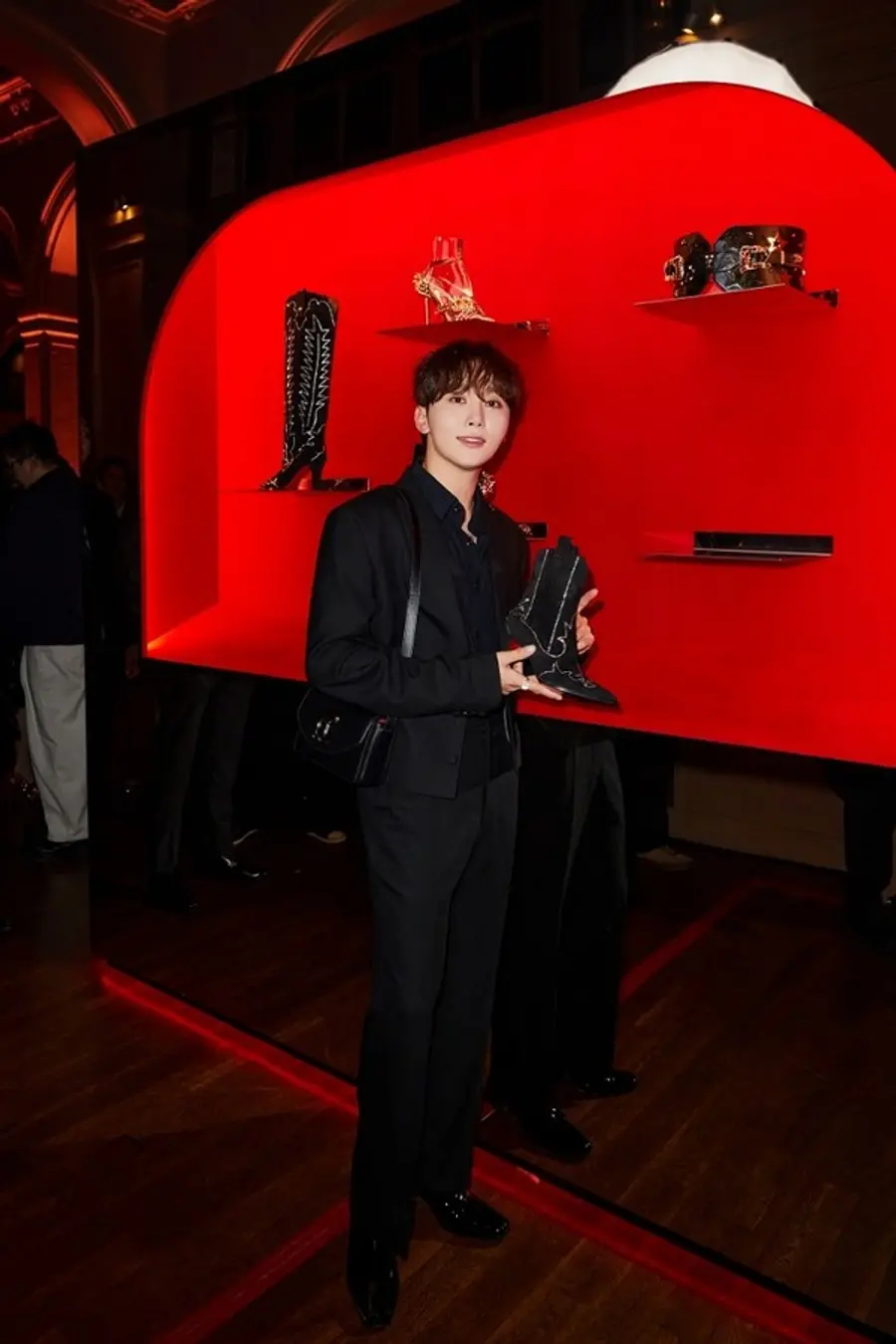 공개된 사진 속 부승관은 블랙 수트에 크리스찬 루부탱의 레드 솔이 매력적인 ‘알레오 40’ 부츠에 문크레스트 로고가 돋보이는 ‘루비 54’ 백을 매치, 시크하면서도 트렌디한 스타일로 등장했다.