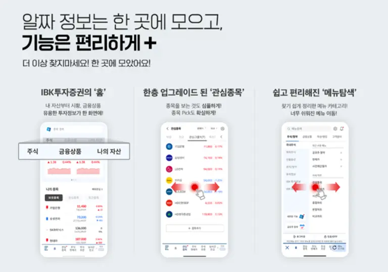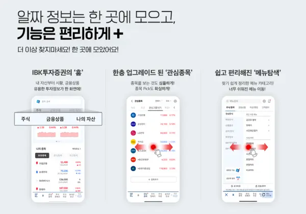 IBK투자증권은 사용자 편의성 극대화에 집중한 MTS 고도화 1단계를 마무리했다고 12일 밝혔다. 이번 개편은 직관적인 디자인을 통해 고객이 더욱 편리하게 MTS를 이용하는 데에 초점을 맞췄다.