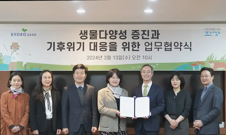 교보증권은 사회적협동조합 한강과 생물다양성 증진 및 기후위기 대응을 위한 업무협약을 체결했다고 13일 밝혔다.