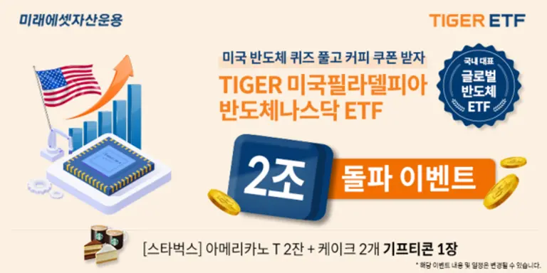 미래에셋자산운용은 ‘TIGER 미국필라델피아반도체나스닥 ETF’ 순자산 2조원 돌파를 기념해 고객 감사 이벤트를 진행한다. 오는 26일까지 TIGER ETF 홈페이지에서 ‘TIGER 미국필라델피아반도체나스닥 ETF’ 관련 퀴즈 정답자 중 추첨을 통해 기프티콘을 제공한다. 자세한 내용은 미래에셋자산운용 TIGER ETF 홈페이지에서 확인할 수 있다.