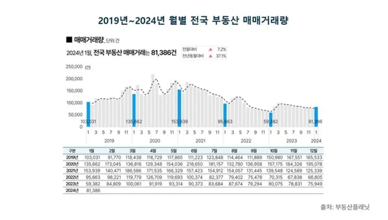 부동산플래닛 정수민 대표는 “4개월 연속 무겁게 가라 앉았던 아파트 시장이 반등하는 모습을 보이며 올해 1월 전국 부동산 거래 상승에 일조했다”며 “아파트를 포함한 주택 유형과 상업업무용 빌딩 등의 수치가 회복되고는 있지만 부동산 시장 전반으로 확산될 지는 지켜봐야 하는 상황”이라고 전했다.