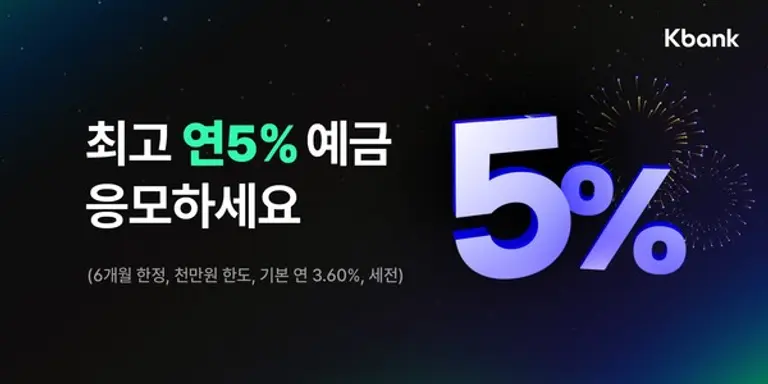 이날부터 케이뱅크 고객이면 누구나 최고금리 연 5%의 정기예금에 응모할 수 있다. 이벤트 공유하기 기능으로 링크를 공유하면 응모 2회로 인정한다. 응모는 2회까지 제한된다.