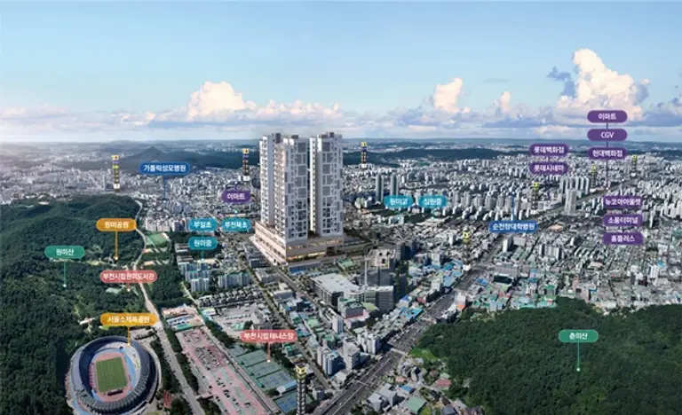 단지 주변에는 풍부한 대형 개발사업이 진행 중에 있어 미래가치도 뛰어나다. 종합운동장 일대에 첨단산업 유치 및 쿼드러플 역세권 개발을 목표로 한 역세권융복합개발사업(26년 완공예정), 부천역곡 일대에 쾌적하고 스마트한 주거단지를 조성할 계획인 부천역곡 공공주택사업(27년 완공예정) 등을 비롯해 부천 대장신도시 공공주택지구 사업(29년 완공예정), 영상문화산업단지(27년 완공예정) 등 다양한 사업이 진행 중으로, 향후 첨단산업 기능을 갖춘 미래형 자족도시로 거듭날 것으로 기대된다.