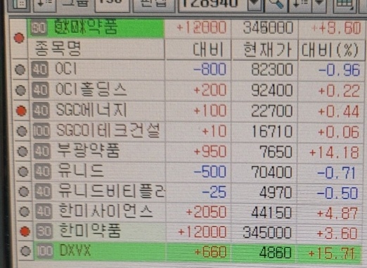 25일 경영권 분쟁 가능성이 재차 강화되면서 한미그룹 관련주들이 일제히 오름세를 보이고 있다. 특히 임종윤 사장이 대주주로 있는 DXVX의 오름폭이 상대적으로 높게 나타나고 있다.