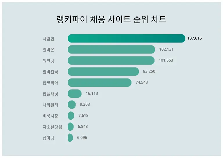 | 5 | 잡코리아 | 74,543 | 1% | 28% | 35% | 24% | 12% |