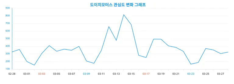 이 차트는 시간에 따른 도이치모터스의 인기 변동성을 직관적으로 나태내고 있다.