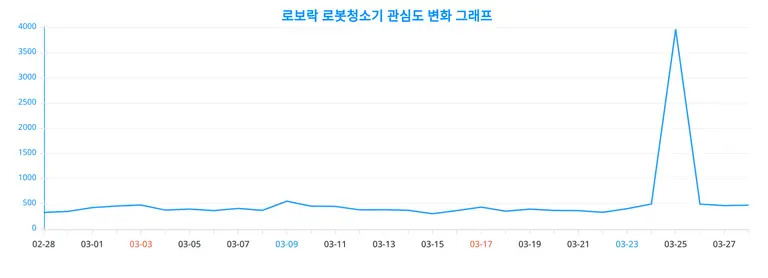 이 차트는 로보락 로봇청소기의 시간에 따른 인기 변동성을 직관적으로 이해할 수 있는 지표이다.