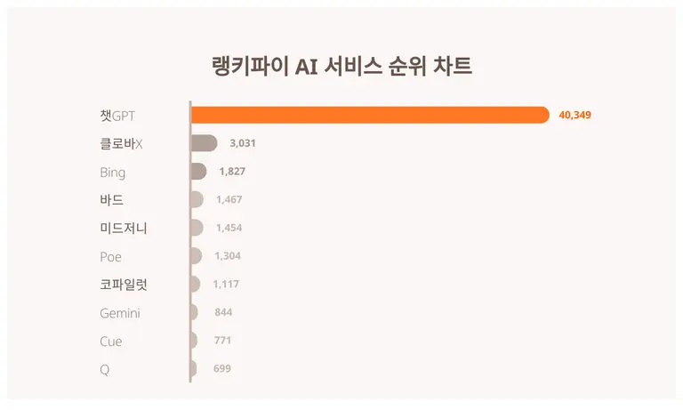 | 1 | 챗GPT | 40,349 | 39,386 | 963 | 2.4% |