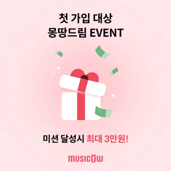 ‘첫 가입 몽땅드림’ 이벤트는 기간 내 뮤직카우 신규 회원으로 가입하고, 가입일 포함 7일 이내에 미션을 완료한 고객에게 최대 3만원의 리워드를 지급하는 이벤트다.