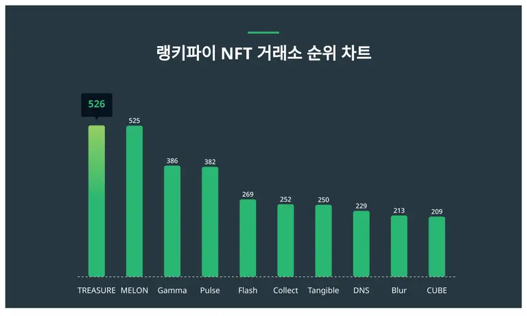 TREASURE가 트렌드 지수 526포인트로 랭키파이 4월 1주차 NFT 거래소 트렌드 지수에서 1위에 올랐다.