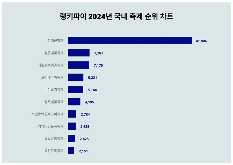 | 1 | 진해군항제 | 41,806 | 37,739 | 4,067 | 10.8% |