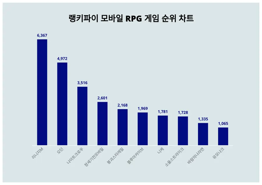 | 1 | 리니지M | 6,367 | 17,974 | -11,607 | -64.6% |