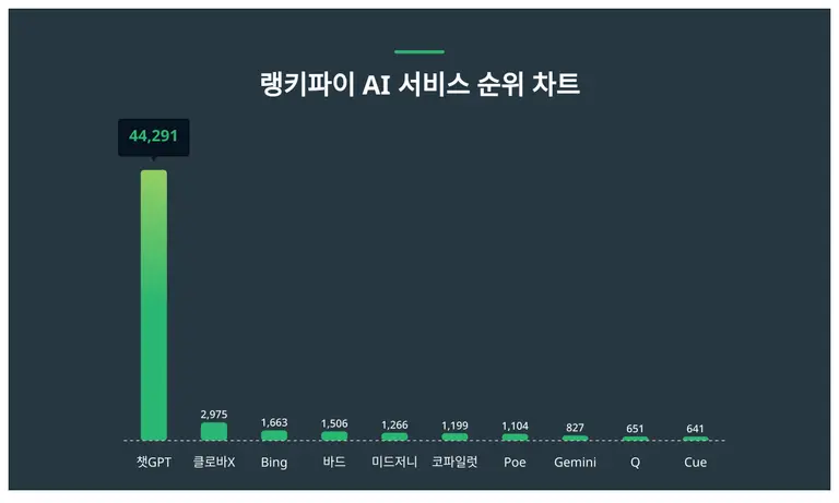 | 1 | 챗GPT | 44,291 | 40,349 | 3,942 | 9.8% |