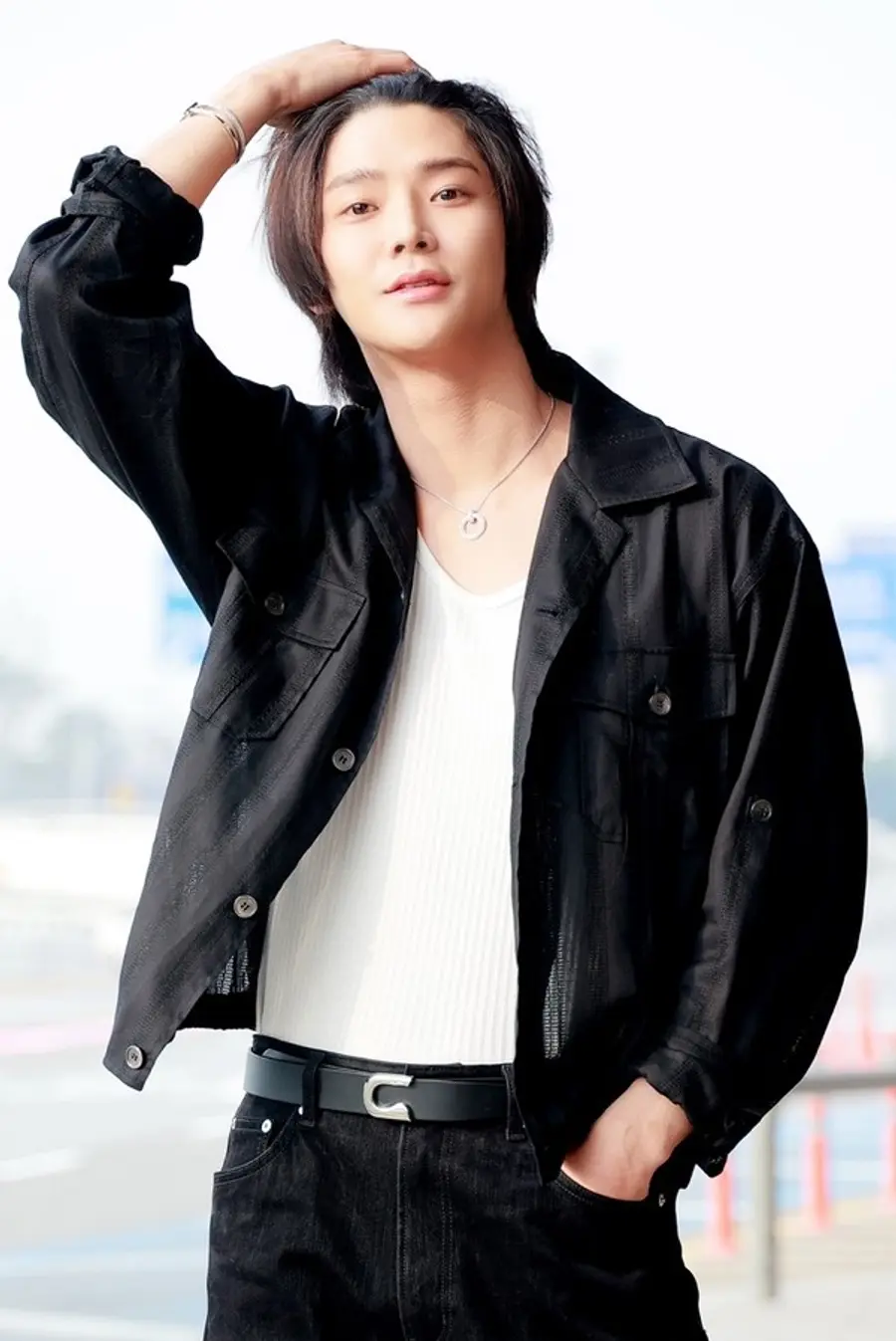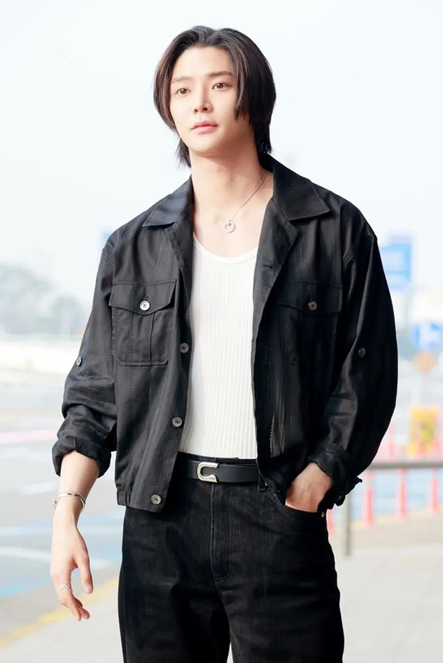 로운은 블랙 컬러의 재킷과 팬츠로 캐주얼하면서도 시크한 분위기가 돋보이는 올 블랙 룩을 선보였다. 여기에, 팬던트 목걸이와 뱅글 레이어링, 화이트 골드 반지를 매치해 포인트를 주며 럭셔리한 분위기가 느껴지는 공항패션을 완성했다.