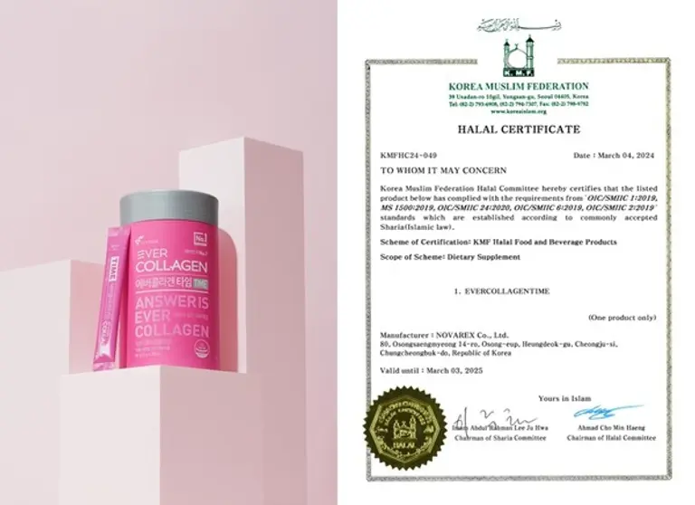 뉴트리는 건강기능식품 ‘에버콜라겐 타임(완제품)’과 자체개발 기능성원료 ‘저분자 콜라겐펩타이드’ 에 대한 할랄 인증을 획득했다고 9일 밝혔다.