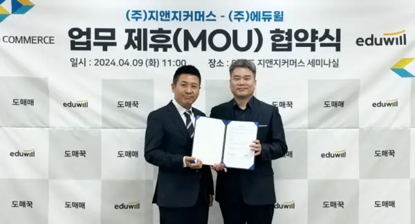 에듀윌(대표 양형남)은 지난 9일 서울 여의도에 위치한 지앤지커머스 본사에서 B2B 온라인 유통 플랫폼 ‘도매꾹·도매매’ 운영사 지앤지커머스(대표 모영일)와 업무 협약을 체결했다고 11일 밝혔다.
