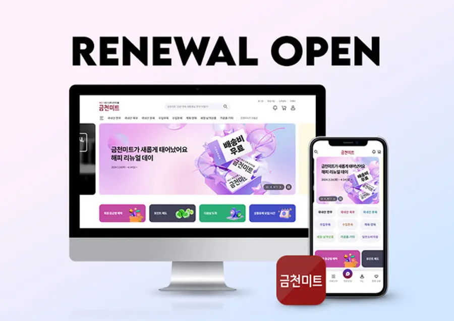 ‘금천미트’는 정육점, 식당 등에 한우, 한돈, 수입육 등 1000여 개의 축산물을 판매하는 국내 최대 축산 도매 온라인몰이다. 이번 리뉴얼을 통해 고객 맞춤 추천 기능은 물론 간결한 홈페이지 디자인과 모바일에 최적화된 앱 화면을 갖춰 이용 편의성을 높였다.