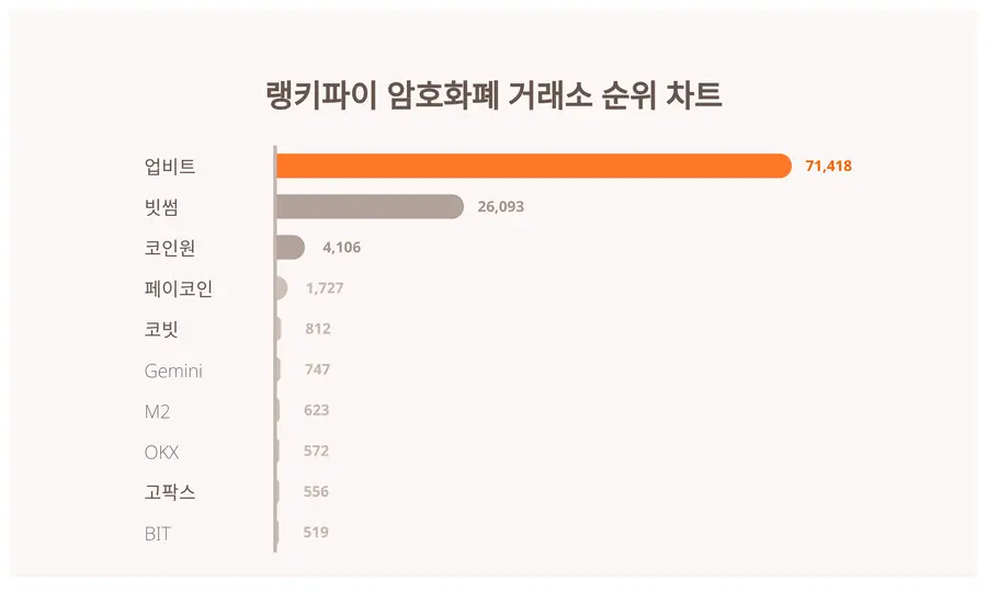 | 1 | 업비트 | 71,418 | 86% | 14% |