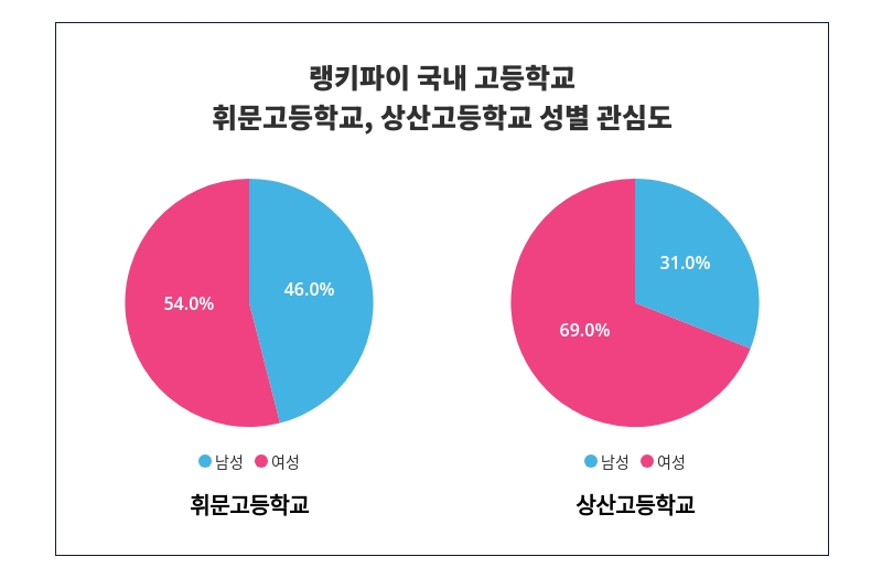 성별 관심도 부문에서 휘문고등학교의 성별 관심도와 상산고등학교의 성별 관심도는 위와 같이 나타났다.