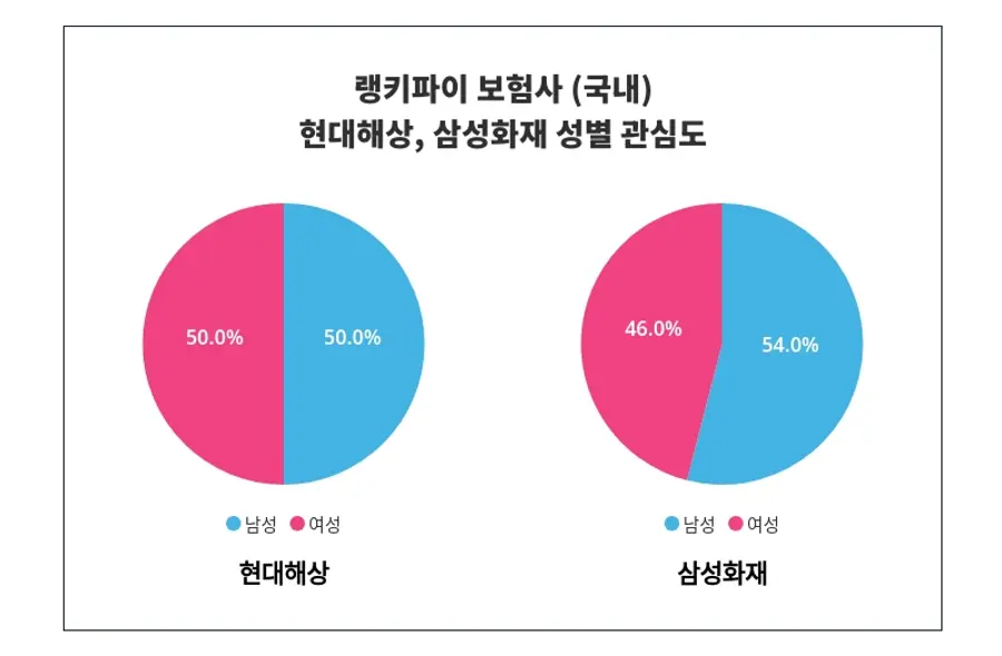 성별 관심도 부문에서 현대해상의 성별 관심도와 삼성화재의 성별 관심도는 위와 같이 나타났다.
