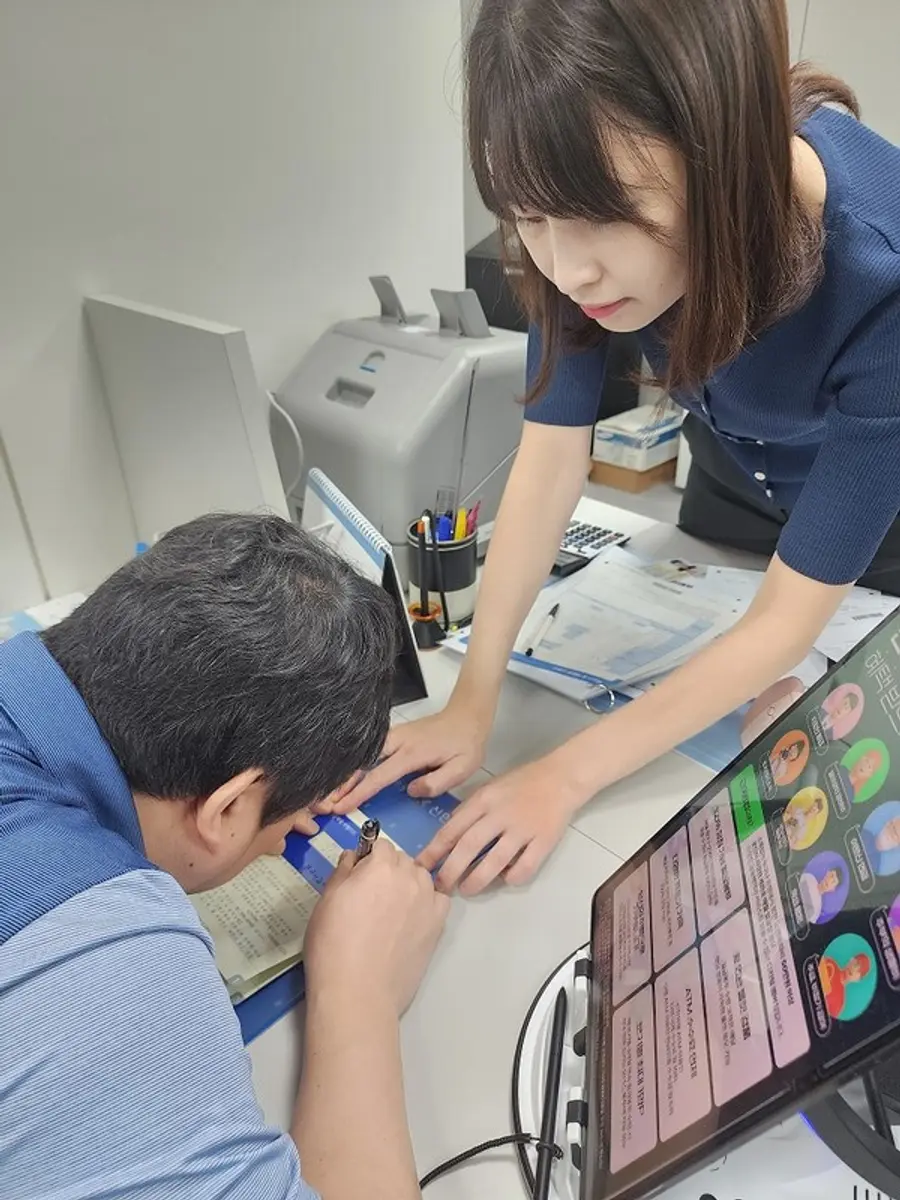 응대키트는 ▲서류에서 자필로 작성해야 하는 부분을 알아보기 쉽게 하는 자필카드, ▲지폐의 크기로 권종을 쉽게 구분할 수 있도록 도와주는 지폐 가이드, ▲숫자를 점자로 인식할 수 있도록 돕는 숫자 점자 스티커 등으로 구성했다.