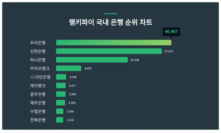 | 1 | 우리은행 | 40,967 | 45,637 | -4,670 | -10.2% |