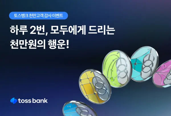 토스뱅크가 천만 고객을 대상으로 감사 이벤트를 진행한다고 18일 밝혔다. 사흘간 하루 2번 추첨을 통해서 1천만원의 행운을 전한다.
