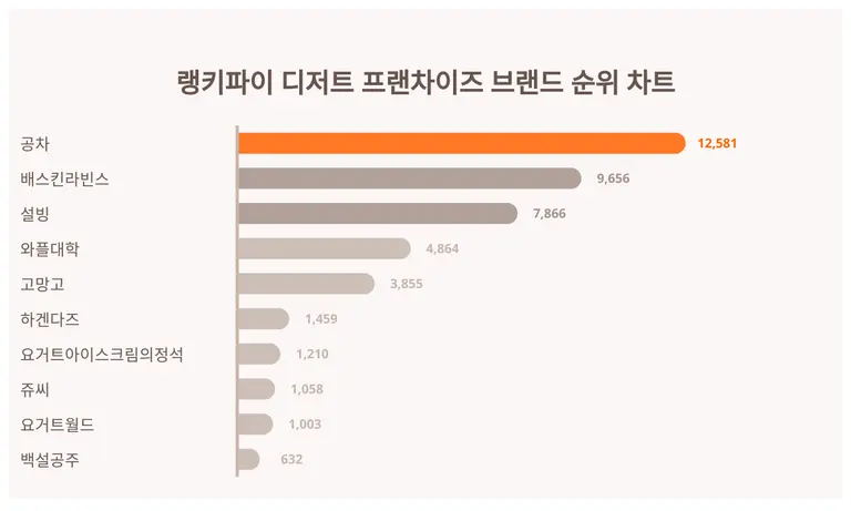 | 2 | 배스킨라빈스 | 9,656 | 8,213 | 1,443 | 17.6% |