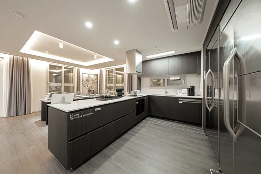 코오롱글로벌 칸칸프리미엄 키친상품은 난도가 높은 랩핑 기술(PET 멤브레인)을 적용해 구현이 어려운 엠보싱(Embossing) 도어의 표면 질감과 디자인을 효과적으로 구현했다. 또한 오염에 강한 소재(SMR PET)를 적극 활용해 지문 및 오염 방지 등 기능적인 측면도 강화했다.