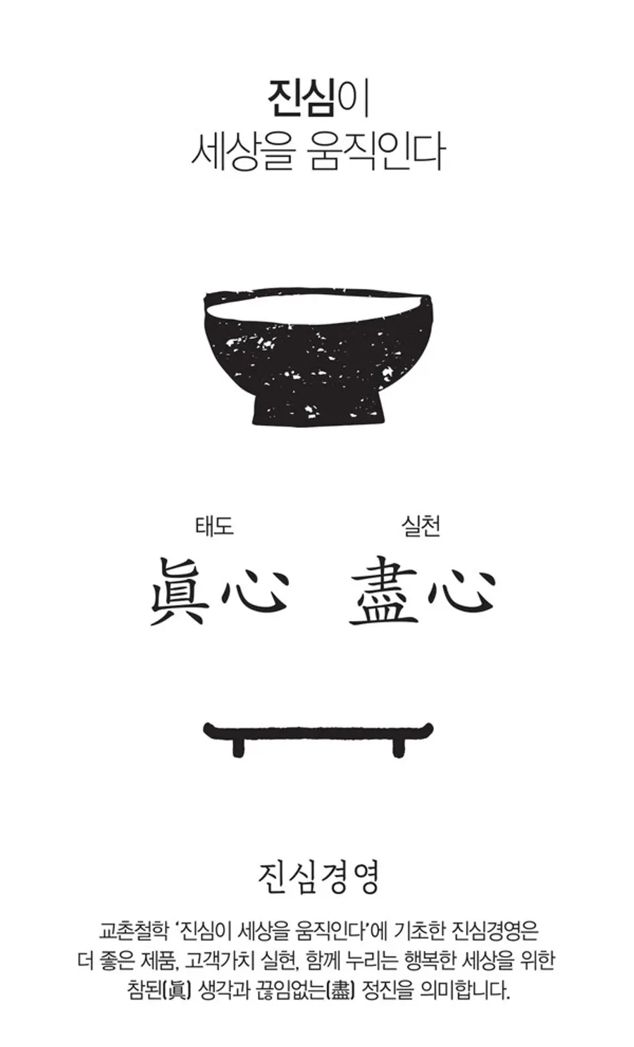 더 좋은 제품과 고객가치 실현, 함께 누리는 행복한 세상을 위한 참된(眞) 생각과 끊임없는(盡) 정진을 의미한다.