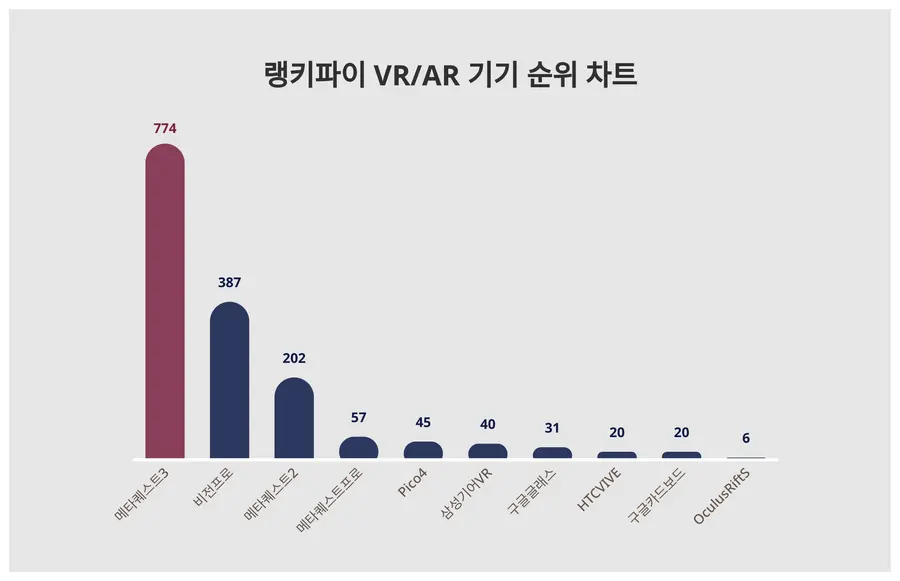 3위 메타퀘스트2는 202포인트로 전주보다 35포인트 상승했다.