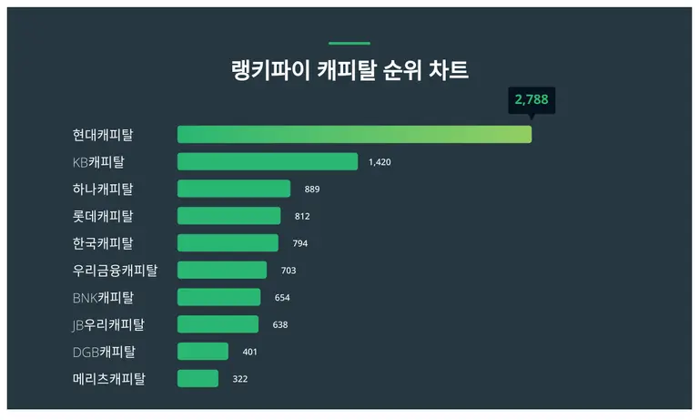 | 3 | 하나캐피탈 | 889 | 61% | 39% |