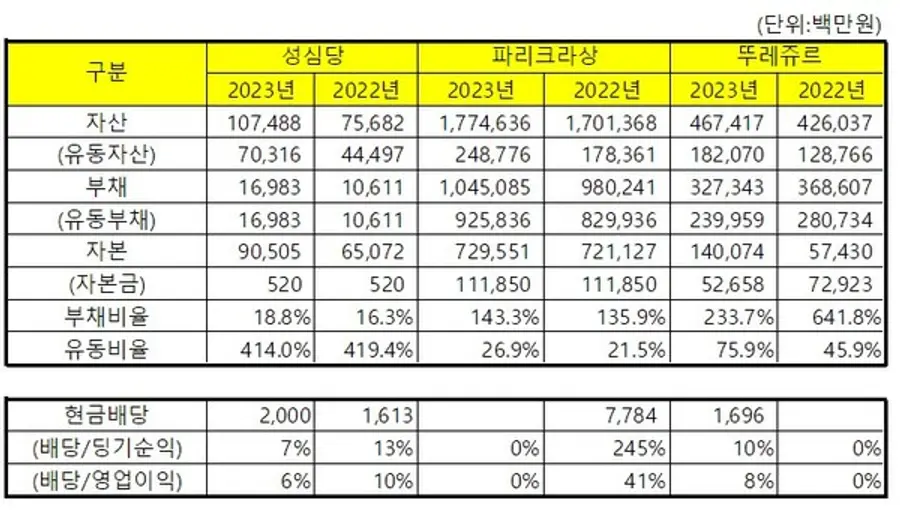 ◇성심당 부채비율 18.8% vs. 파리크라상 143.3% vs. 뚜레쥬르 233.7%