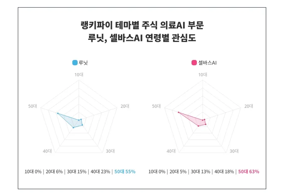 연령별 관심도 부문에서 루닛의 연령별 관심도와 셀바스AI'의 연령별 관심도는 위와 같이 나타났다.