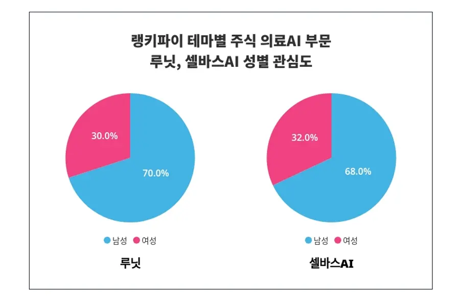 성별 관심도 부문에서 루닛의 성별 관심도와 셀바스AI'의 성별 관심도는 위와 같이 나타났다.