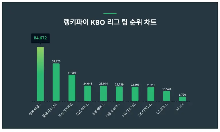 | 1 | 한화 이글스 | 84,672 | 64% | 36% |