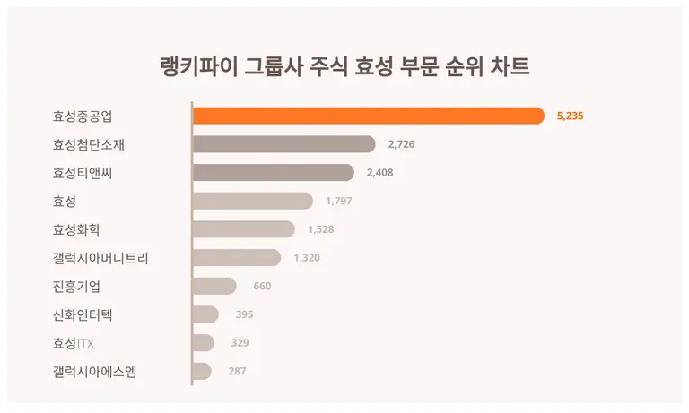 [출처: 랭키파이 그룹사 주식 효성 부문 트렌드 지수 분석 결과]