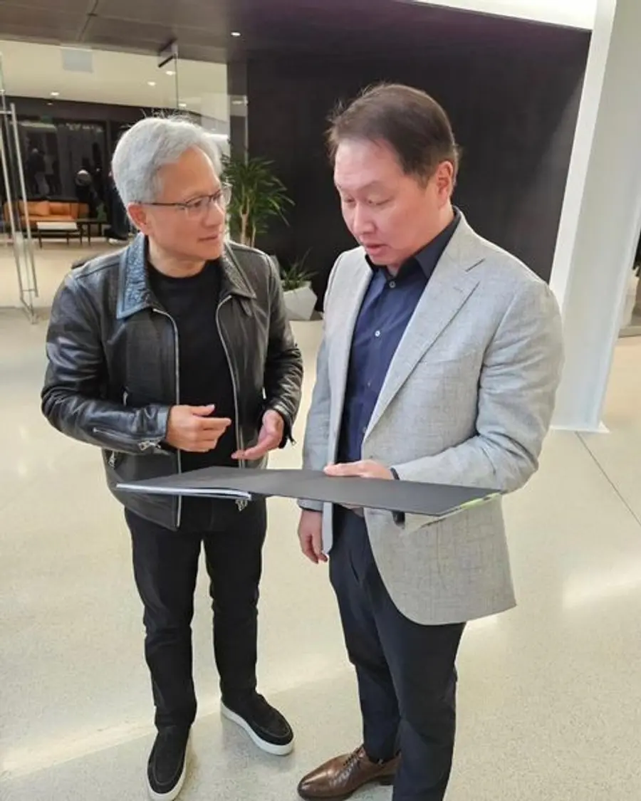 최태원 SK그룹 회장이 젠슨 황 엔비디아 CEO와의 만남을 인증했다.