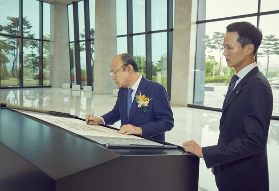 이날 김승연 회장은 한화생명 본사 방명록에 “한화금융의 혁신을 위한 끊임없는 도전을 응원합니다. 세계 시장으로 뻗어 나가는 글로벌 1위 기업을 향해 함께 나아갑시다.”라고 적었다.