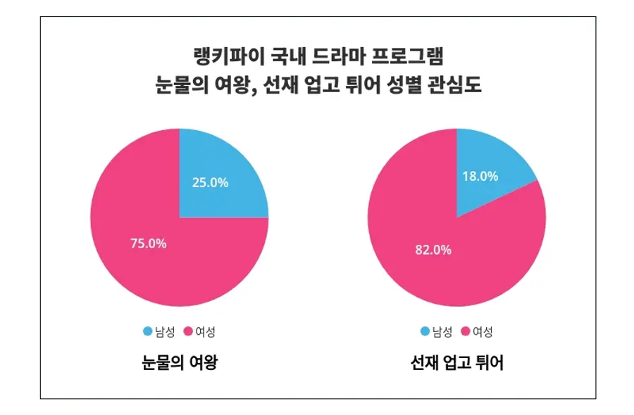 성별 관심도 부문에서 눈물의 여왕의 성별 관심도와 선재 업고 튀어'의 성별 관심도가 어떻게 분포되어 있는지에 대한 분석이 공개되었다.