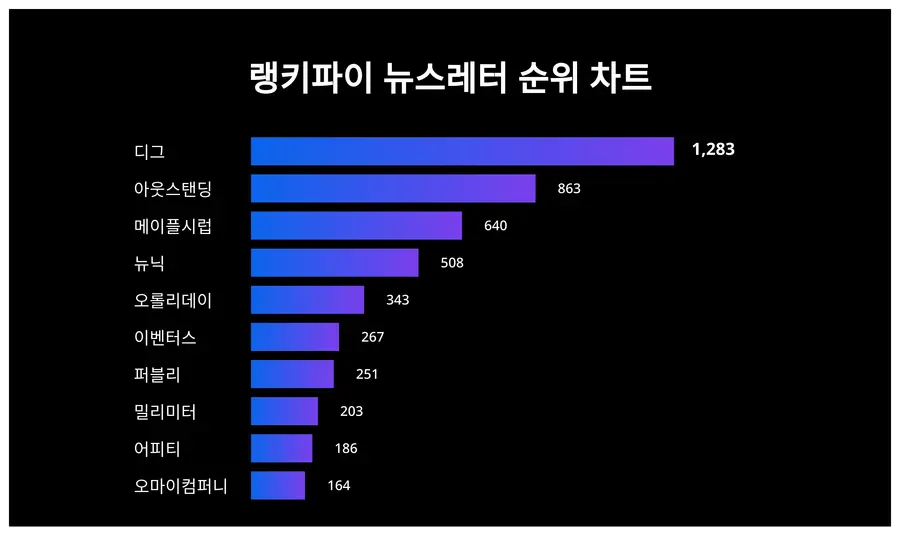 디그가 트렌드 지수 1,283포인트로 4월 4주차 뉴스레터 트렌드 지수에서 1위에 올랐다.