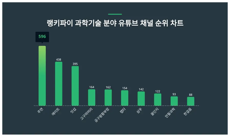 주연이 트렌드 지수 596포인트로 4월 4주차 과학기술 분야 유튜브 채널 트렌드 지수에서 1위에 올랐다.