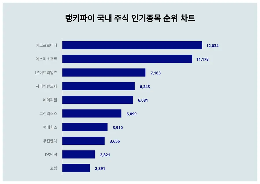 [출처: 랭키파이 국내 주식 인기종목 트렌드 테이블]