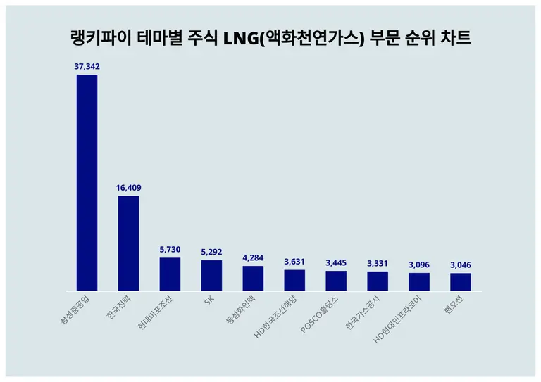 [출처: 랭키파이 테마별 주식 LNG(액화천연가스) 부문 트렌드 테이블]