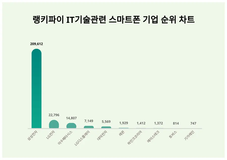 ▲IT기술관련 스마트폰 기업 트렌드 지수 분석 결과 ⓒ랭키파이