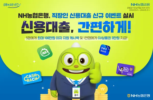 농협은행은 1일부터 31일까지 직장인 고객을 위해 캐시백과 모바일쿠폰을 제공하는 신용대출 이벤트를 진행한다고 밝혔다.