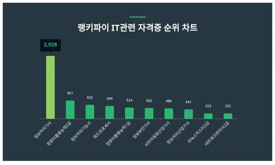 IT관련 자격증 트렌드 지수에서 정보처리기사가 트렌드 지수 2,928포인트로 1위에 올랐다.