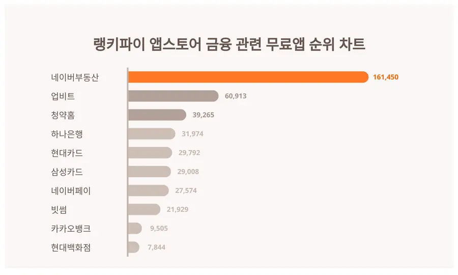 앱스토어 금융 관련 무료앱 부문에 대한 대중들의 관심이 늘어나면서 구체적인 순위에 대한 이목이 집중되고 있다. 특히, 해당 결과는 주 별로 변동되기 때문에 상위 순위로 꼽히기 치열한 경우가 많다.